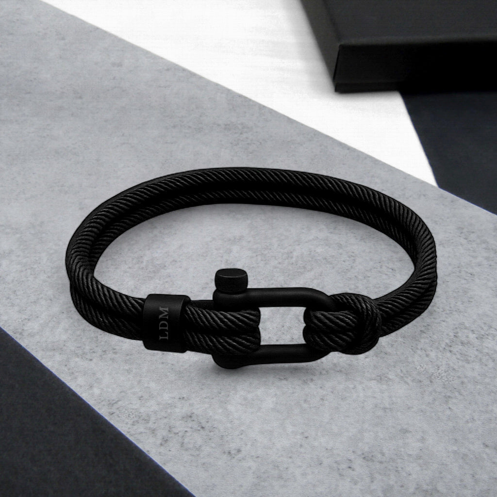 Embrace contemporary nautical style with this personalised men’s double strand D-shackle bracelet, designed for those who value clean design, durability, and meaningful detail. Crafted from premium black twill nylon rope and paired with robust stainless steel hardware, this bracelet delivers a perfect balance of strength, comfort, and modern sophistication.