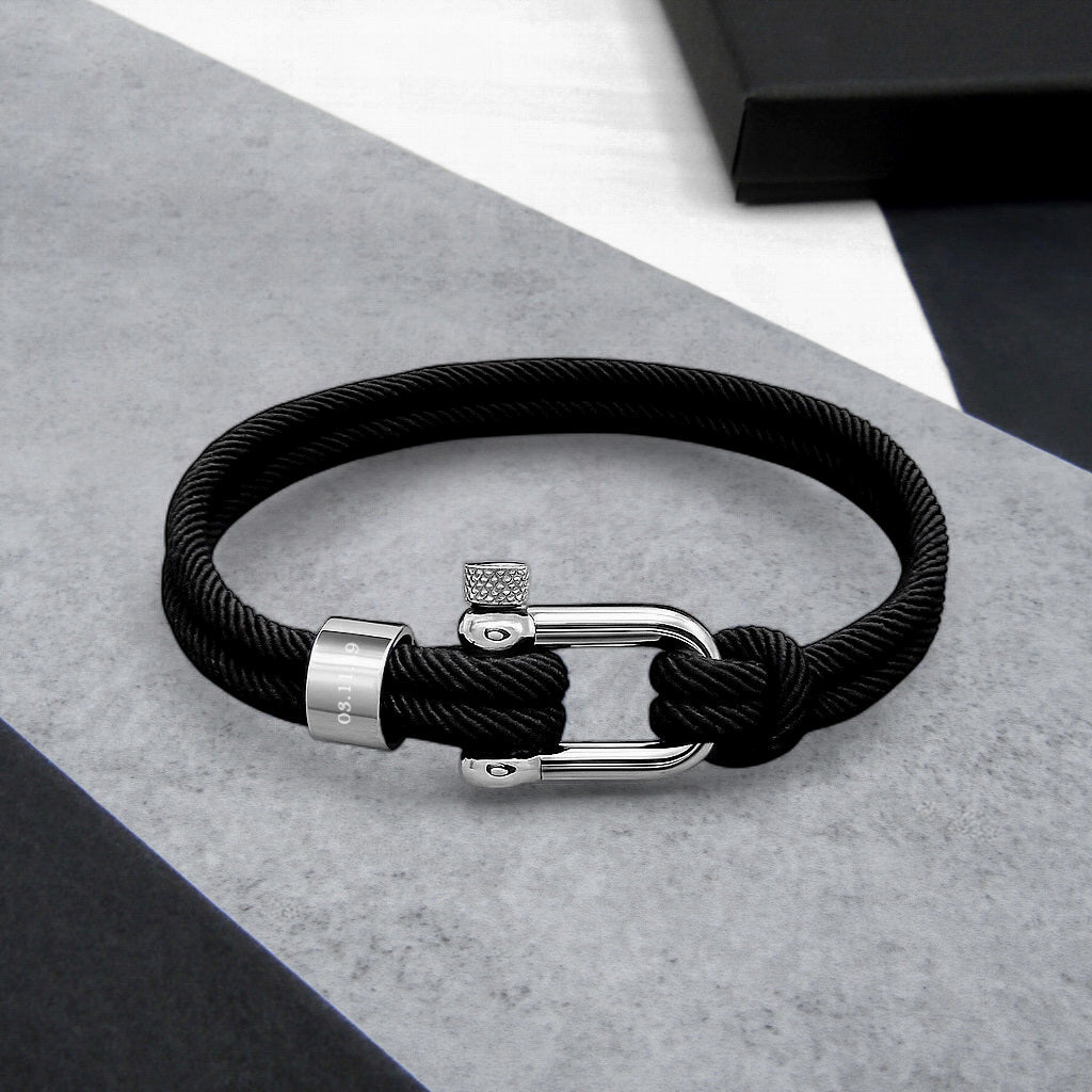 Embrace contemporary nautical style with our men’s double strand D-Shackle & rope bracelet, crafted for those who appreciate refined design and lasting quality. Made from premium twill nylon rope and finished with durable stainless steel hardware, this bracelet blends strength, comfort, and a sleek modern edge.