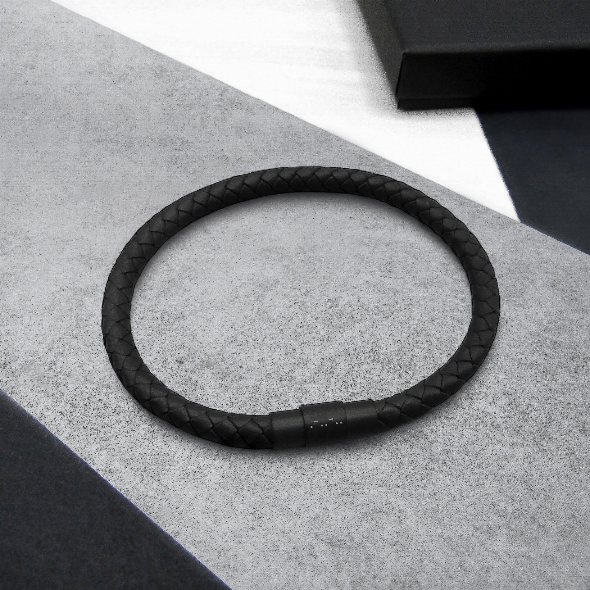 Upgrade your style with our men's personalised Morse Code woven slim leather black clasp bracelet, a sleek and sophisticated accessory that combines personalisation with timeless design. Handcrafted from premium woven leather, this bracelet is available in both single or double strand wraps, giving you the option to customise your look for any occasion, whether you're going for minimalist elegance or a bold layered style.