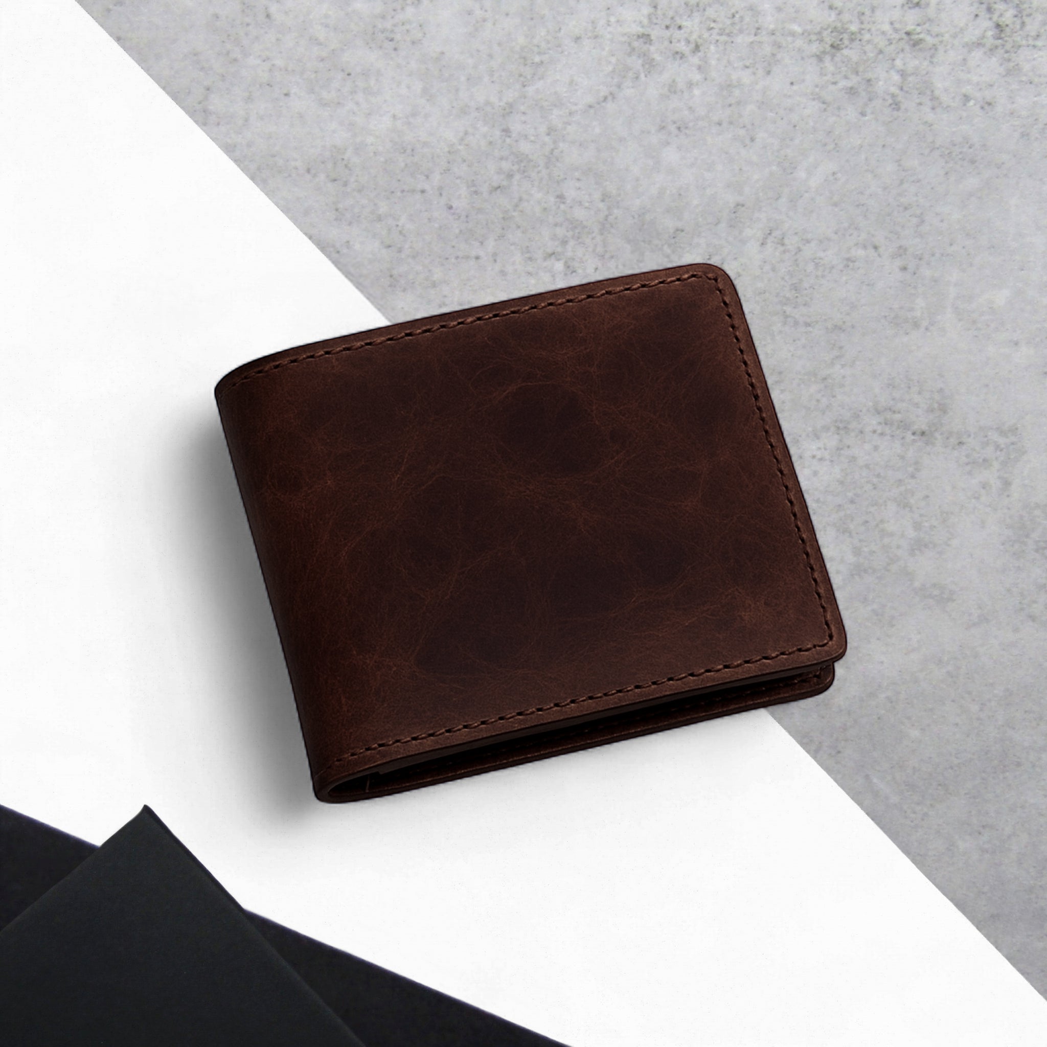 - Durable, timeless men’s bifold wallet design